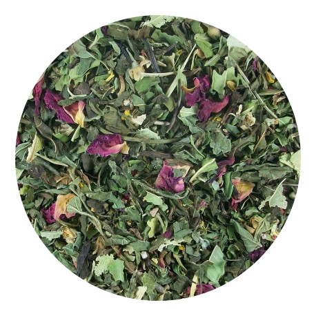 Menta melisa tila hierbaluisa pétalos de rosa y azahar.