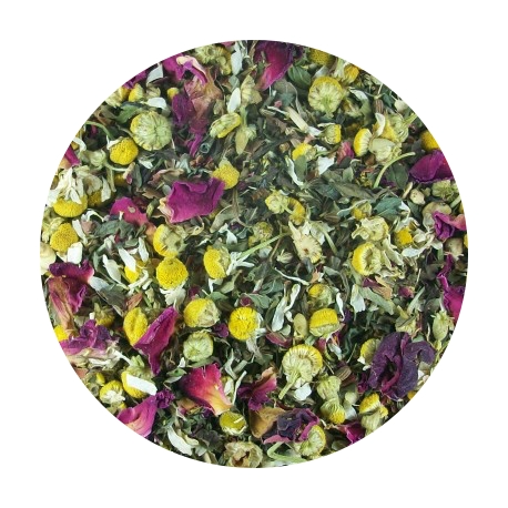 Manzanilla, anís verde, menta poleo, menta, piperita, romero, regaliz, pétalos de rosa y jengibre.