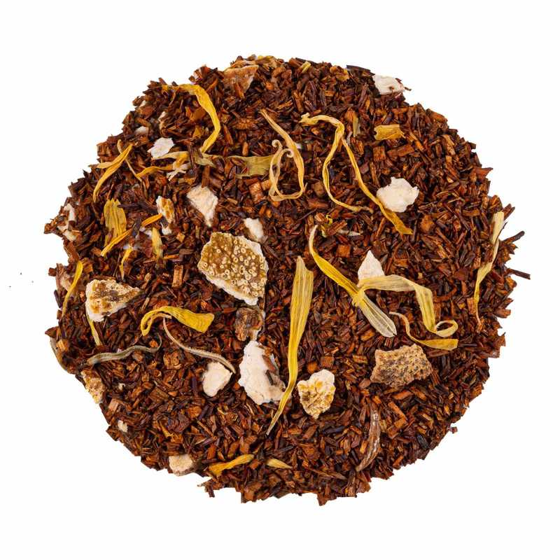 Rooibos, cáscara de naranja, azahar y aroma natural.