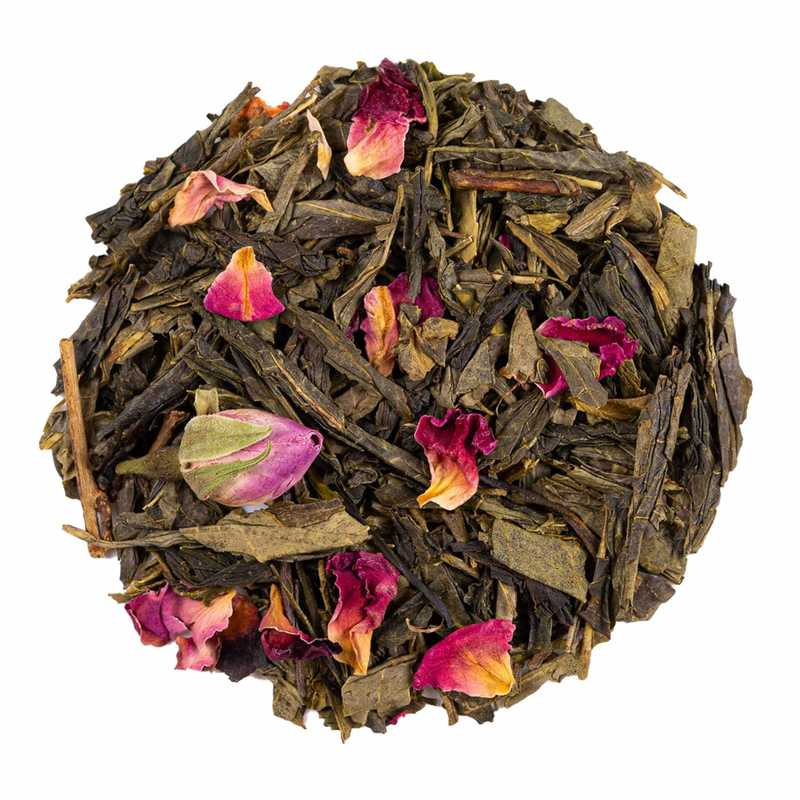 Té verde sencha con aroma de cereza y pétalos de rosa.